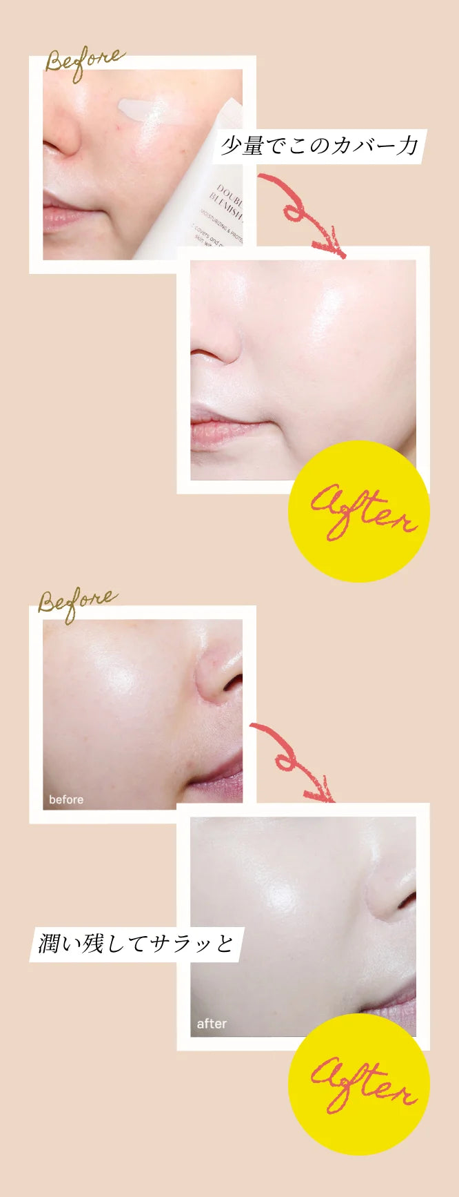 - ダブルキュアブレミッシュバームは肌に刺激にならないように作った再生BBなので、日常生活中の紫外線遮断は可能ですが、紫外線遮断機能性で出た製品ではありません。
